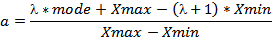 a and b can be calculated from Xmin, Xmax, Mode and λ