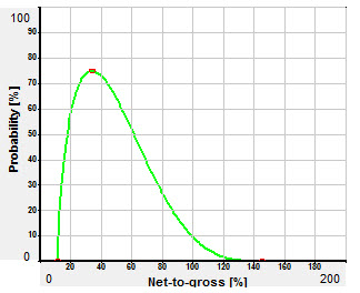 REP will check an entered distribution for obvious inconsistencies. It will not allow you to enter a net-to-gross ratio of less than 0% or more than 100%, for example. When entering normal and log-normal distributions REP calculates the effective P100 and P0 (see above under the description of the normal distribution) and checks that these fall within the normal parameter limits.