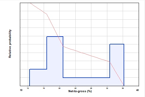 The log-normal distribution is very commonly used and some experts recommend it for everything. It is possible that they do this to try to overcome a noted problem, which is that people tend to underestimate the range. Because the log-normal goes on for ever (subject to REP clipping its extrema) it certainly extends the range over defined distributions such as the triangular. However, this would be tackling the problem the wrong way and the issue of overconfidence is now so well known it is becoming less of an concern. The same experts also quote the central limits theorem, which states that multiplicative processes tend to give log-normal distributions. An example of this is reservoir thickness, being the product of (at least) deposition rate and time of deposition. They forget that "tends to" and "is" are different things and anyway that a distribution models uncertainty (which is a human not a natural phenomenon, and is just as likely to be normal) rather than natural occurrence. It can also be strongly argued that to use a log-normal distribution for porosity, net-to-gross ratio, Sw, formation volume factors and recovery factor is wrong, not least because all of these have inverses (non-net-to gross, hydrocarbon saturation, unrecovered fraction etc.) which could also be log-normal - but they cannot both be. Therefore this over-hyped distribution should be used with care.