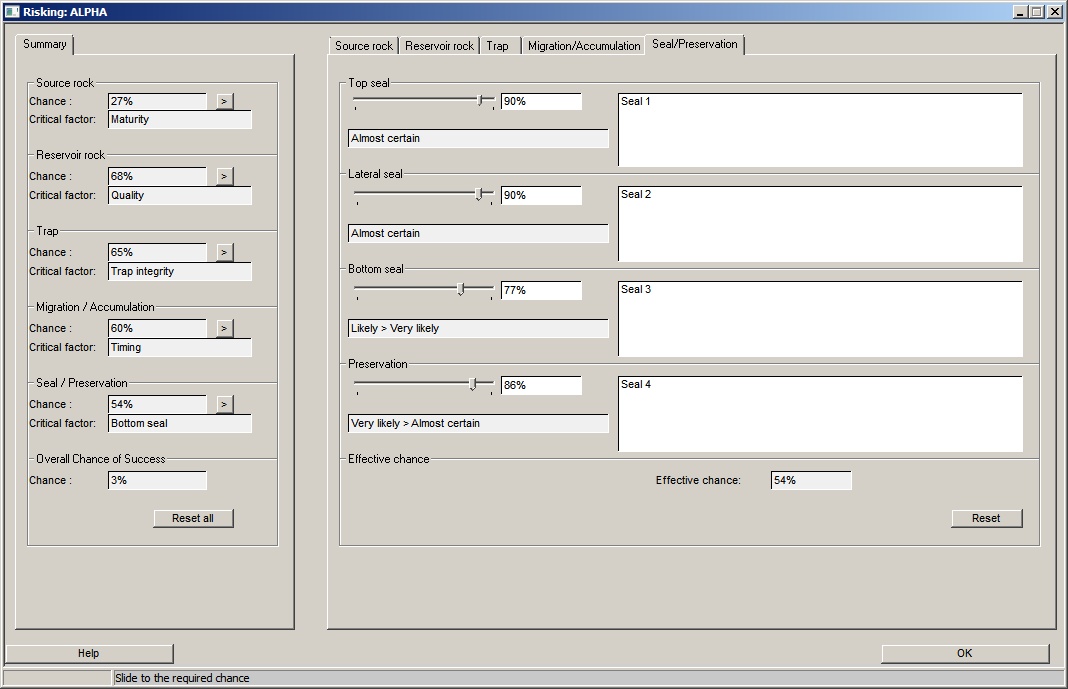 Prospect Chance is divided into five categories: source, reservoir, trap, migration and seal